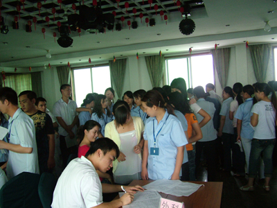 为了不至于影响繁忙的生产,体检先在公司八楼多功能厅进行,再分批去丰和医院作胸片、B超等其它项目的检验。由于公司办公室和工会准备充分,措施得当,使这次体检工作圆满完成。