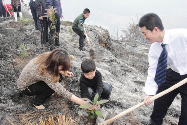 活动前一天,耀世娱乐员工就植树区域进行了确定,这片区域的树木被大火烧了个精光,到达目的地后,家长们首先从娃娃抓起,结合山上大片的黑色灰烬对自己的小孩进行环保知识教育,给他们讲解了植树造林的重要性,教育他们要爱护地球这个大家园。接&,各个家庭挖土的挖土、栽苗的栽苗,经过半天的努力,携手种下了一棵棵亲子树、同心树和幸福树,为山林增添了点点绿色。