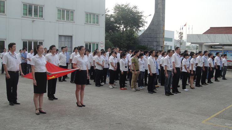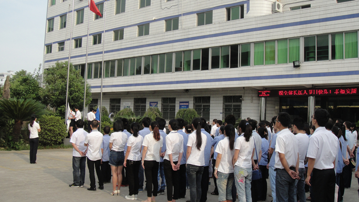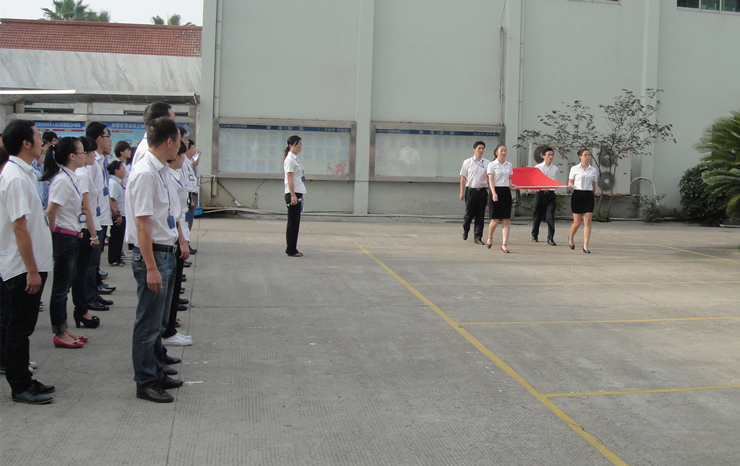 7时30分,耀世娱乐电气“庆‘十一’、升国旗、唱国歌”仪式正式开始。由集团2012年度优秀员工代表薛乐平、张碎红、景山墩、胡浩组成的护旗方队正步走向升旗台,在全体干部员工的庄严注目中,一面鲜艳的五星红旗伴随着雄壮的国歌声徐徐升起。鲜艳的国旗迎风招展,国旗下,参加升旗的公司领导与干部职工排成整齐的队伍全体肃立,怀着崇高的敬意和无比自豪的心情绕肷高唱,嘹亮的国歌声响彻园区。冉冉升起的五星红旗,点燃了每个人心中的爱国之情;激昂的国歌,激发出每个人的责任感和奋进豪情。