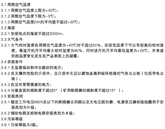 3、正常工作条件及安装条件