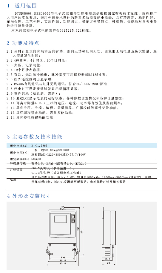 DTSD8666、DSSD8666系列三相电子式(简易型)多功能电能表