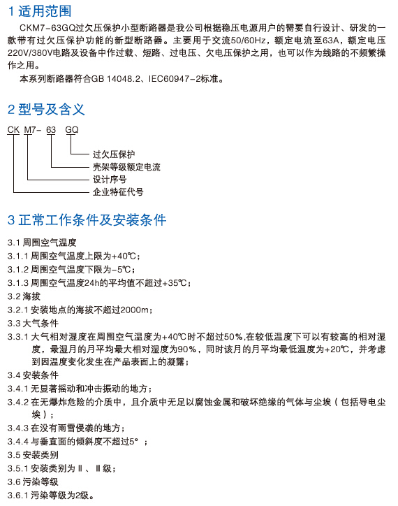 CKM7-63GQ过欠压保护小型断路器