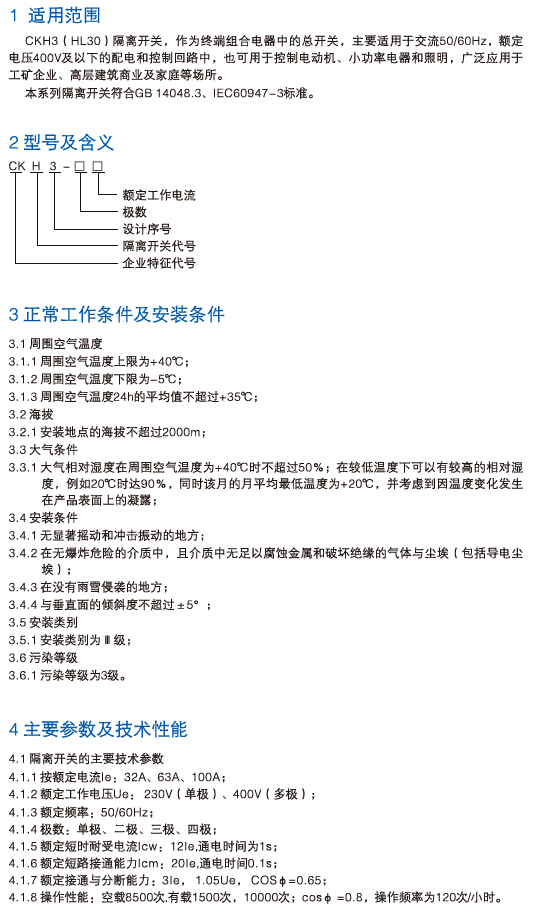 CKH3(HL30)系列隔离开关