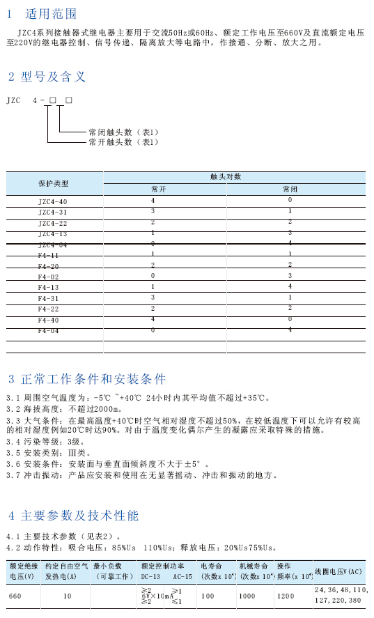 JZC4系列接触器式继电器